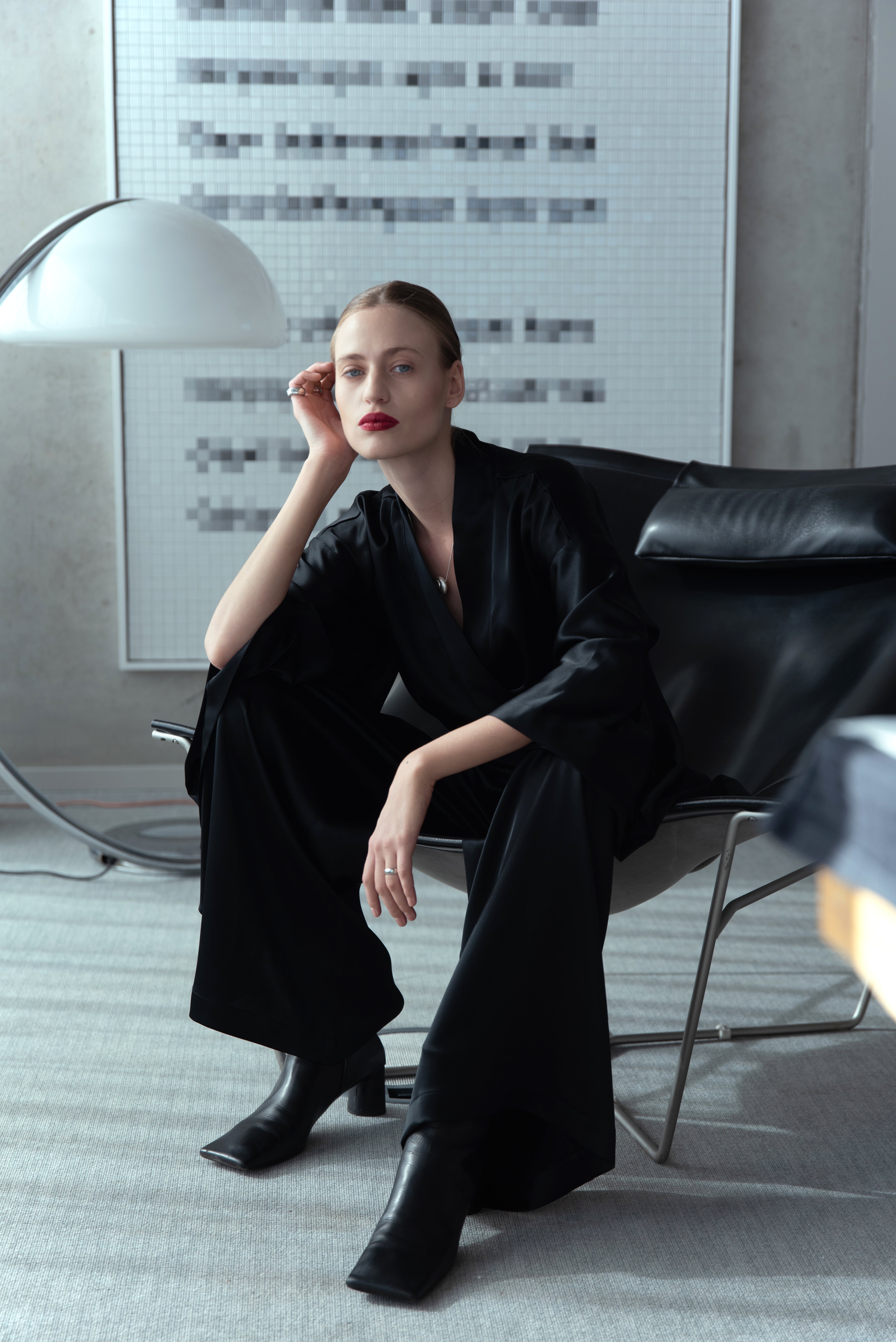 Fabric: 97% Soalon triacetate, 3% elastane.
