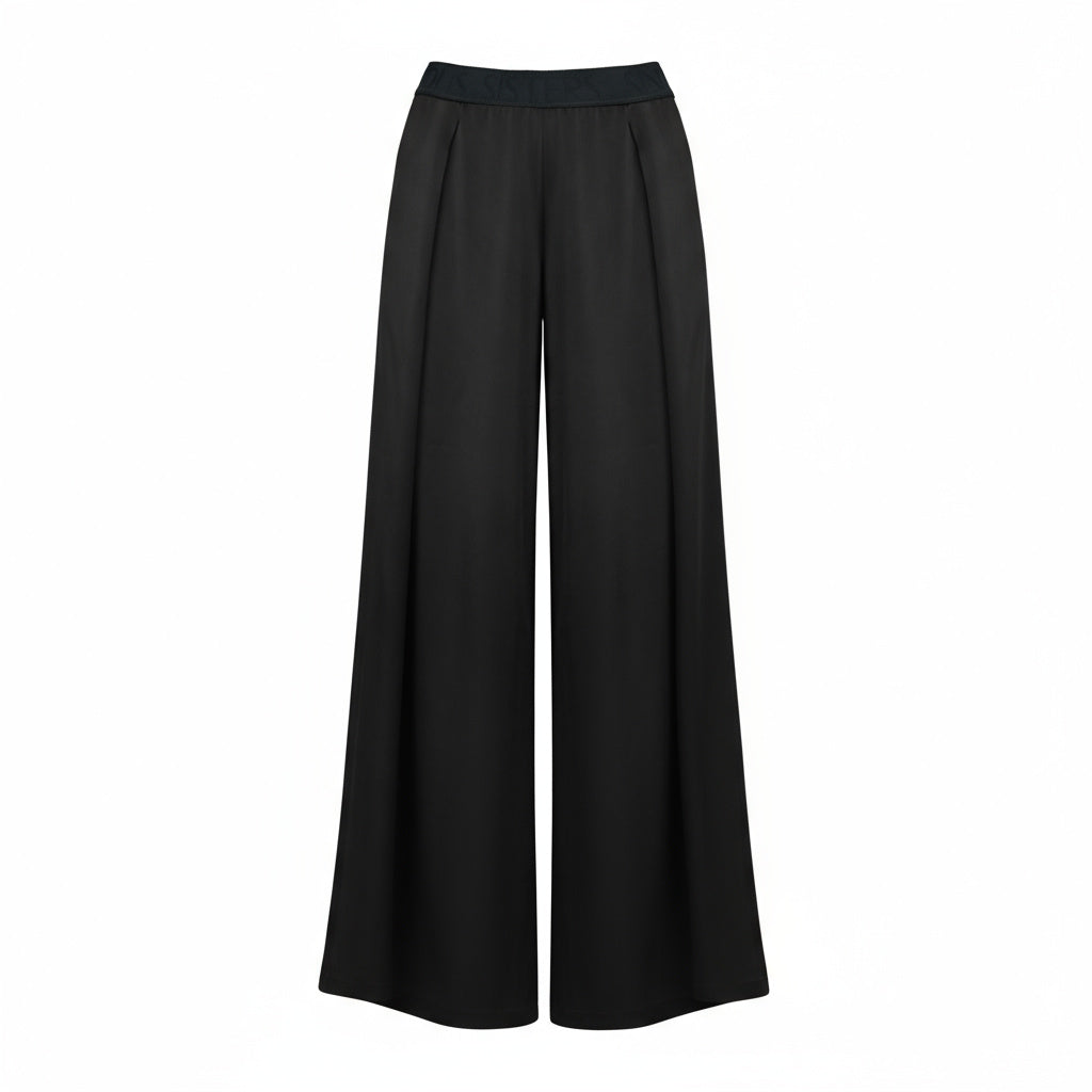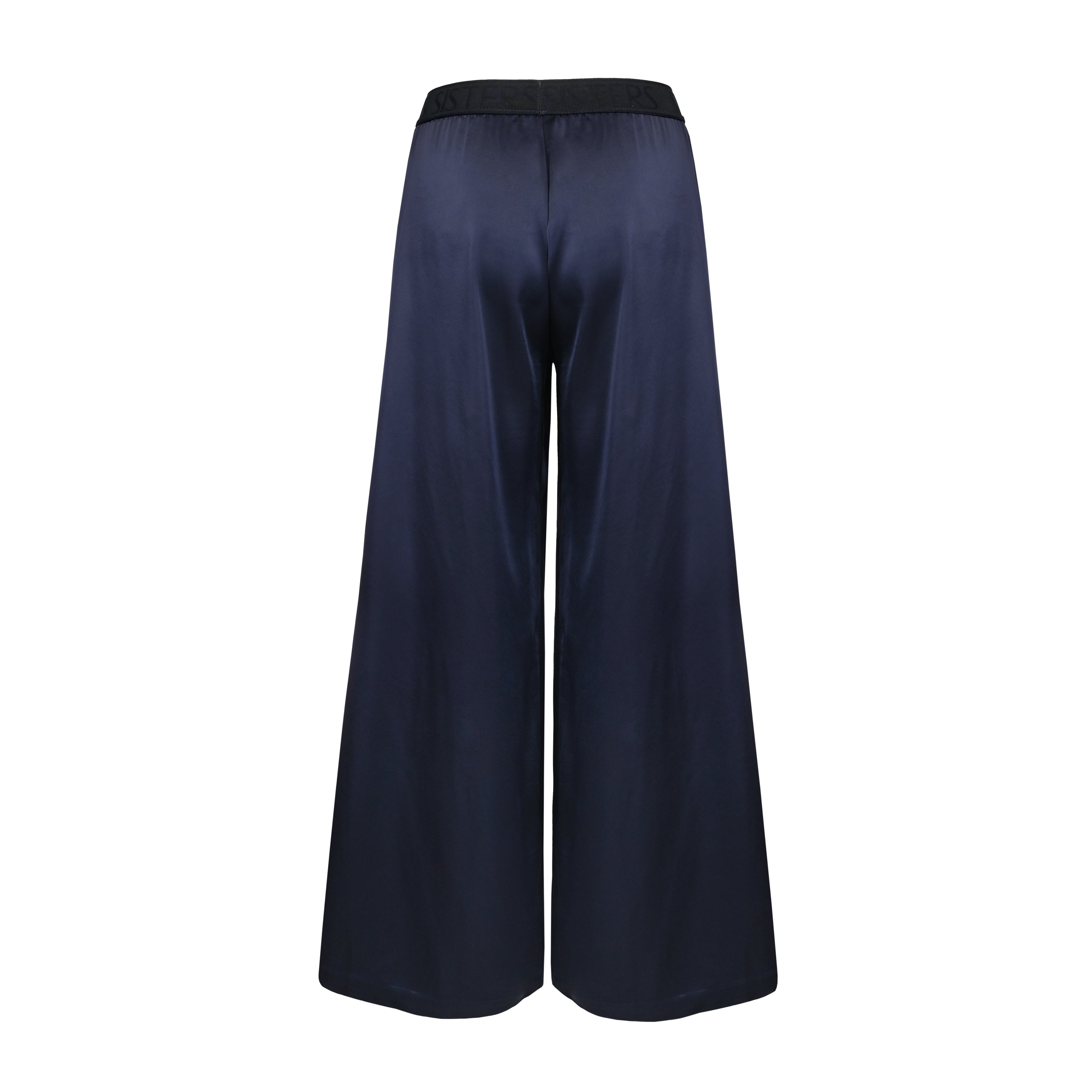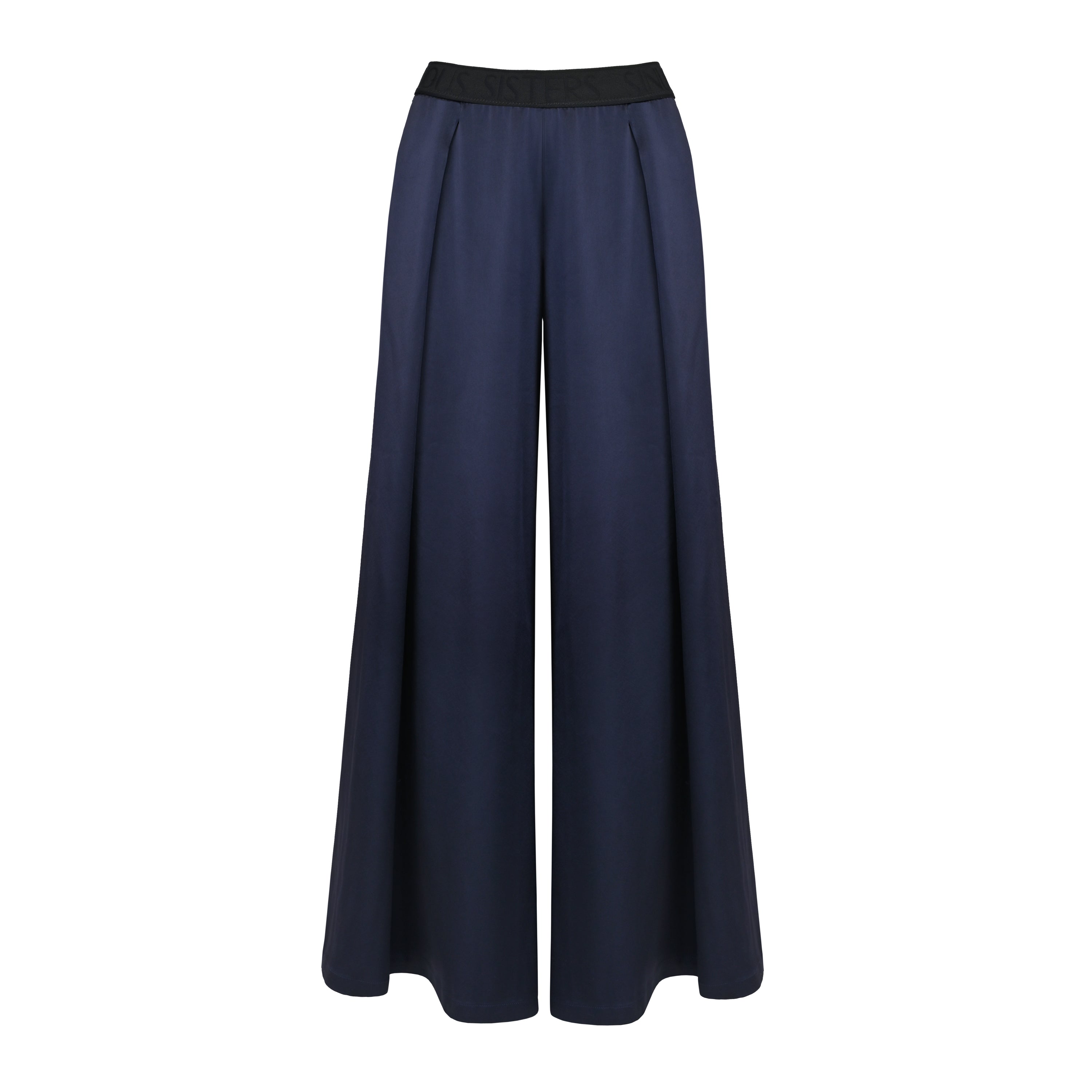 Beautifully tailored trousers handcrafted from a luxurious Soalon triacetate in a deep navy blue shade. Alluring trousers silhouette is styled with wide, black, signature elastic band which perfectly highlight the figure.