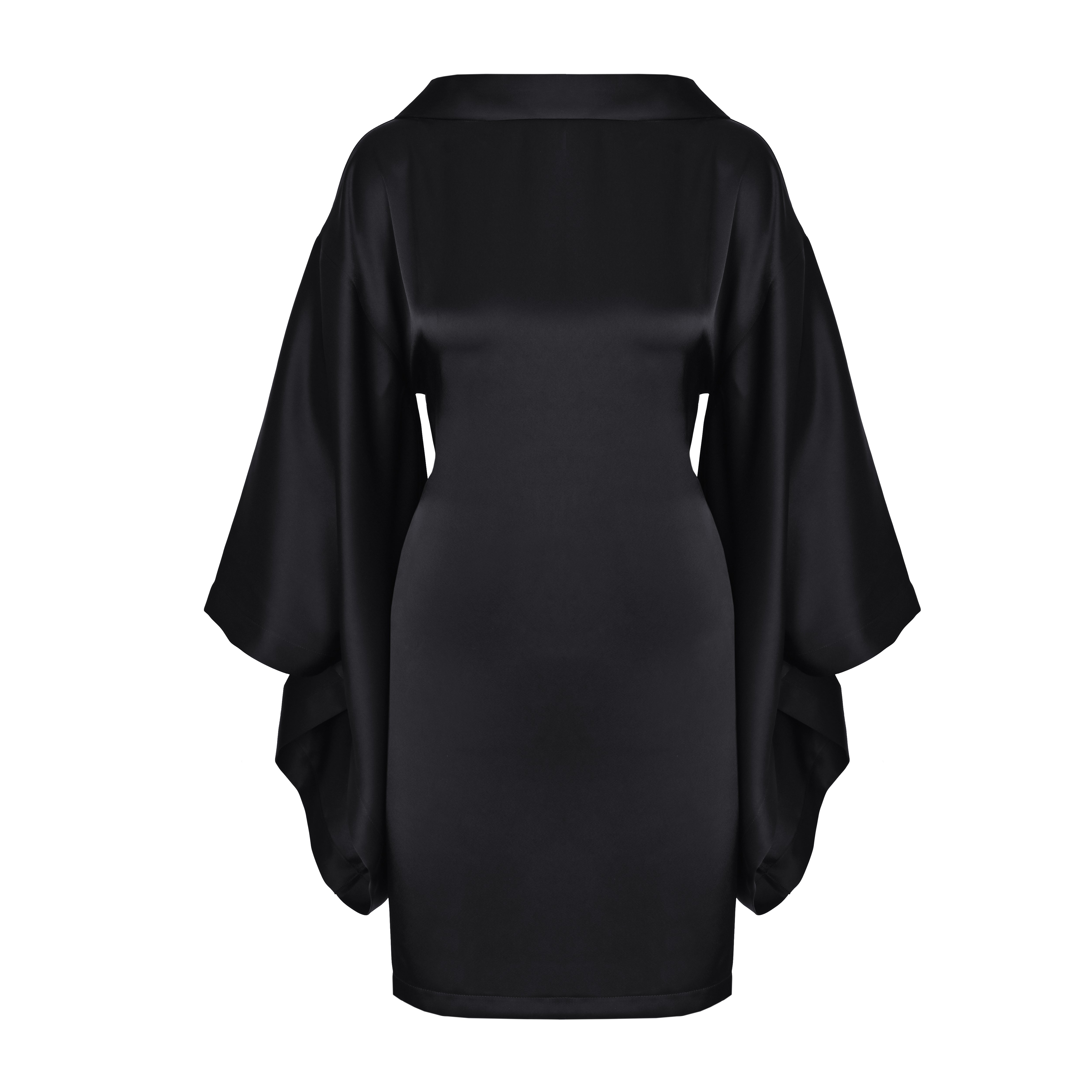 Aya is a versatile black mini dress inspired by the elegance of the Japanese kimono. A soft boat neckline frames the shoulders, while the open back closes with a clean zipper for a precise fit.